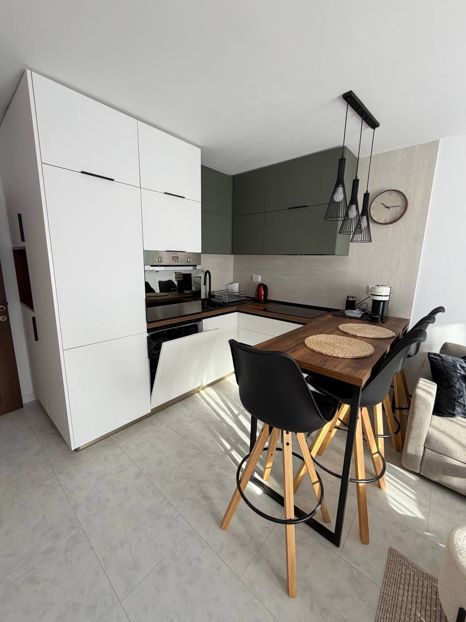 Все необходимое есть в квартире: стиральная машинка, посудомоечная машина, плита на 3 конф, духовка, большой холодильник, 3 кондиционера , большой SMART телевизор, кофе машина, пылесос. Комфортный, просторный апартамент правильной планировки с прихожей. Пол не плитка, кварцвинил.